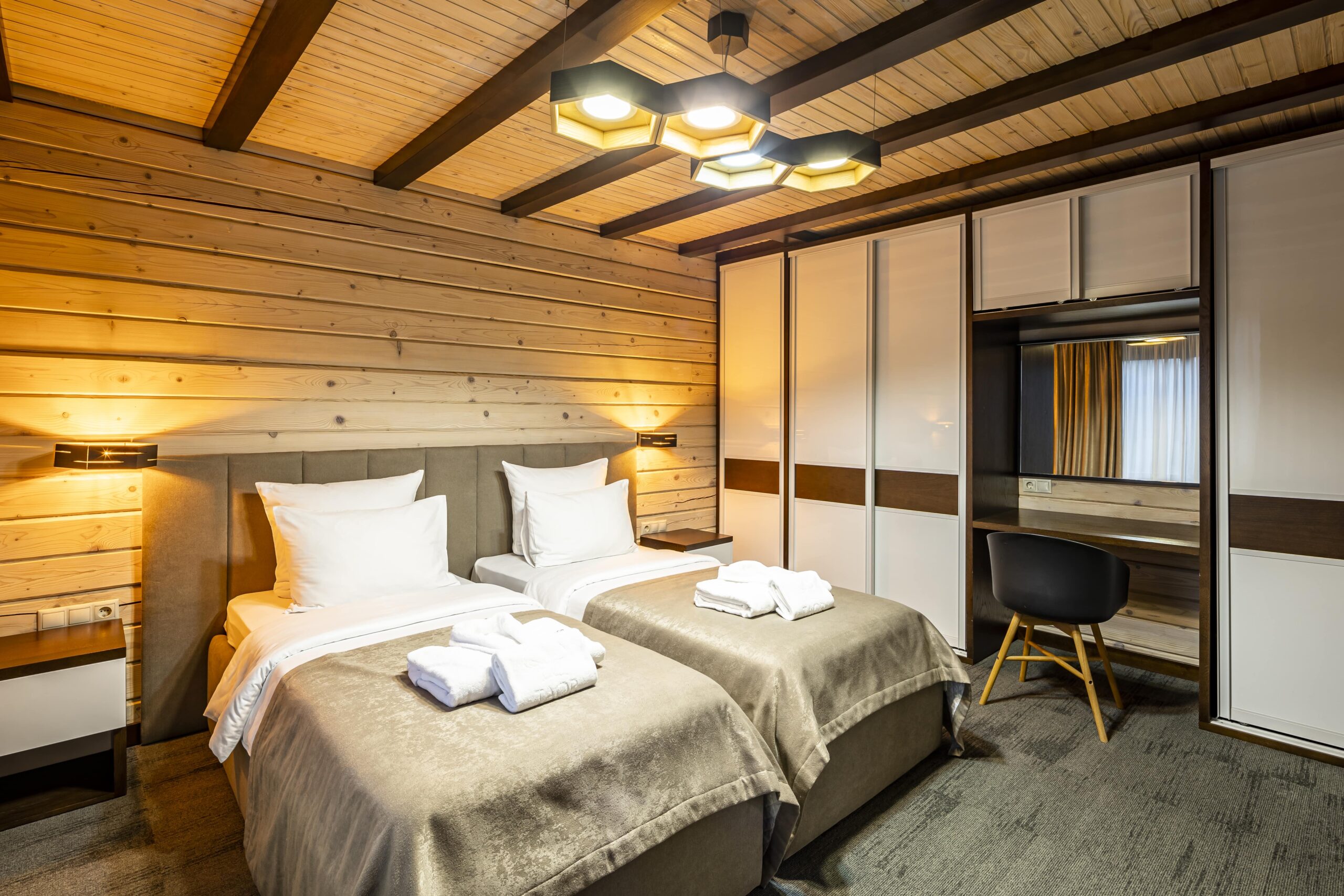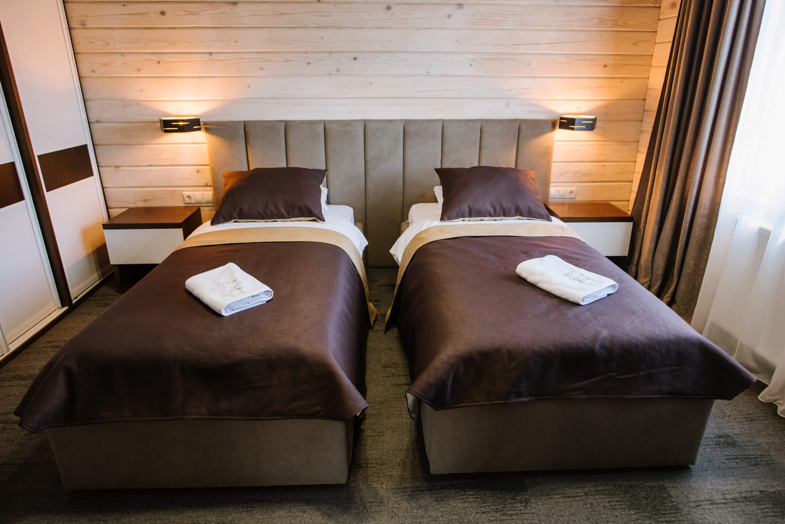 – 2 спальні кімнати (I – двоспальне ліжко, II – два окремі односпальні ліжка);